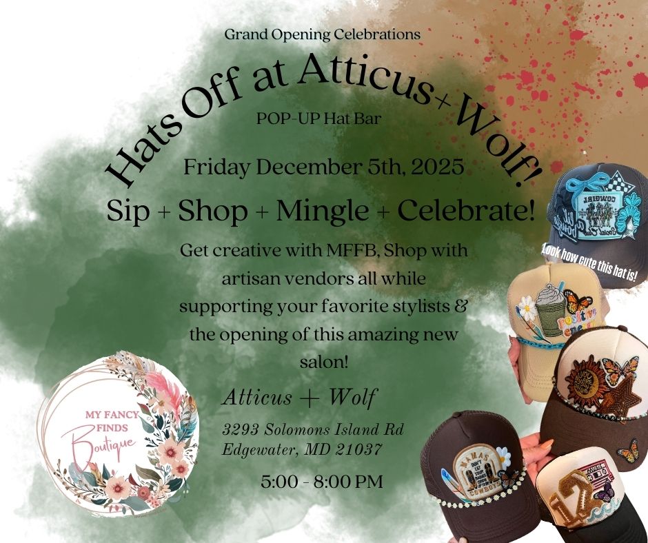 Come celebrate the Grand Opening of Atticus + Main with a collection of vendors, including your favorite: My Fancy Finds Boutique