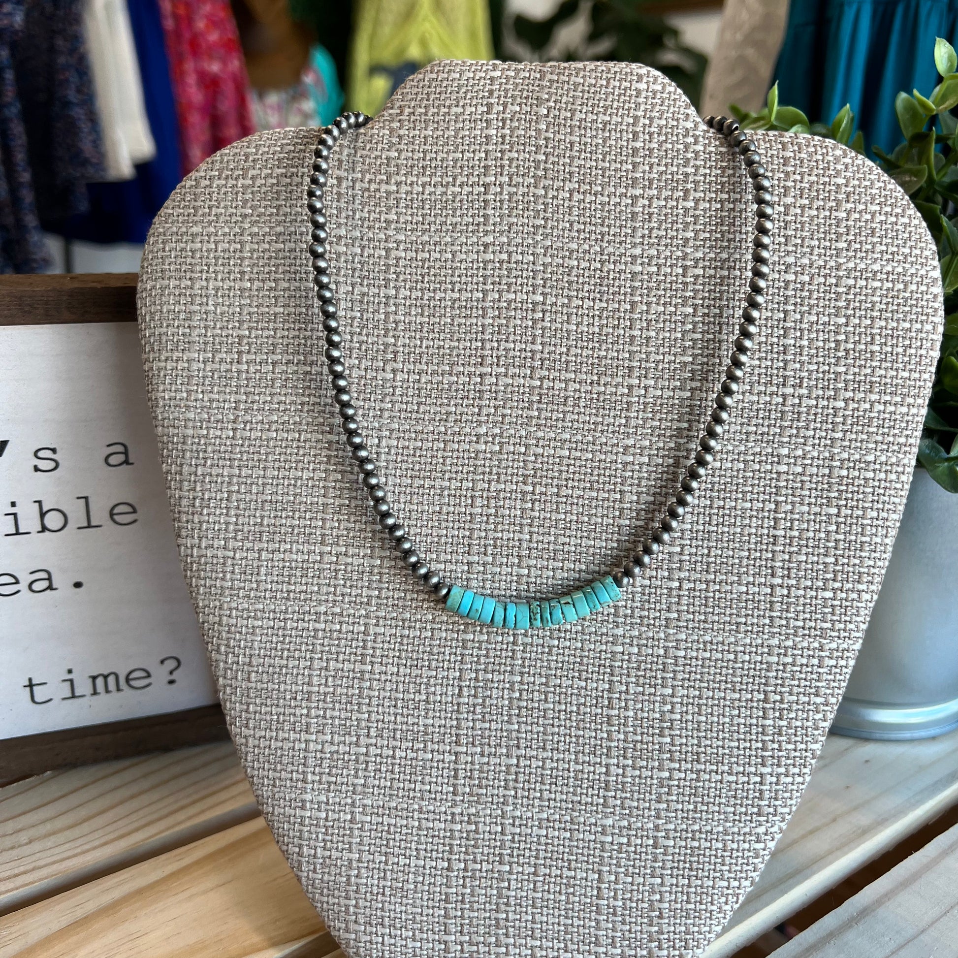 4mm Cowgirl pearl and turquoise chip necklace 15" length