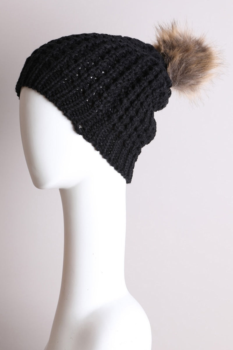 Stay warm and stylish this winter with our Black Double Knit beanie with pom!