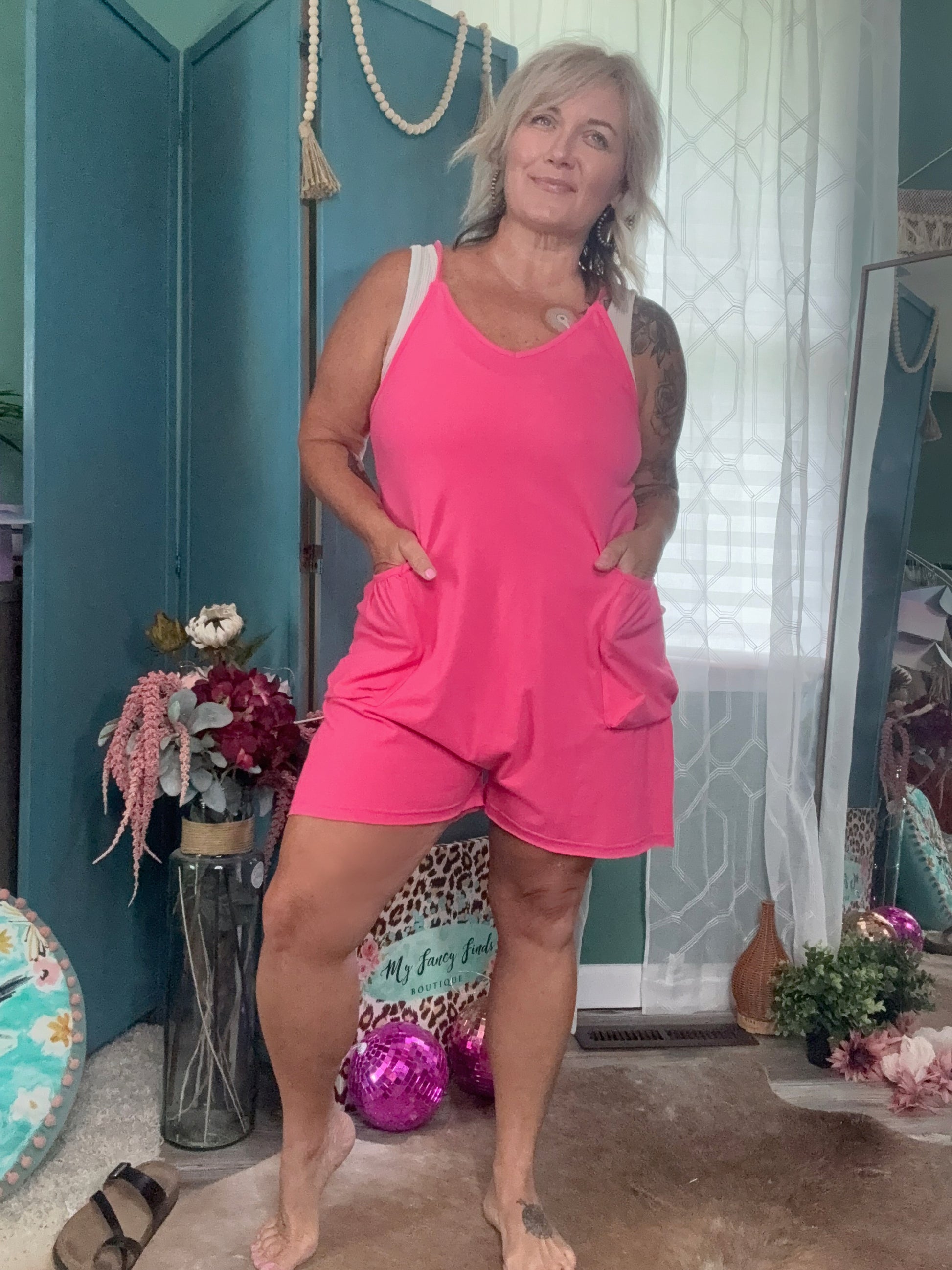 Bright Side Babe Fuchsia Romper with Pockets