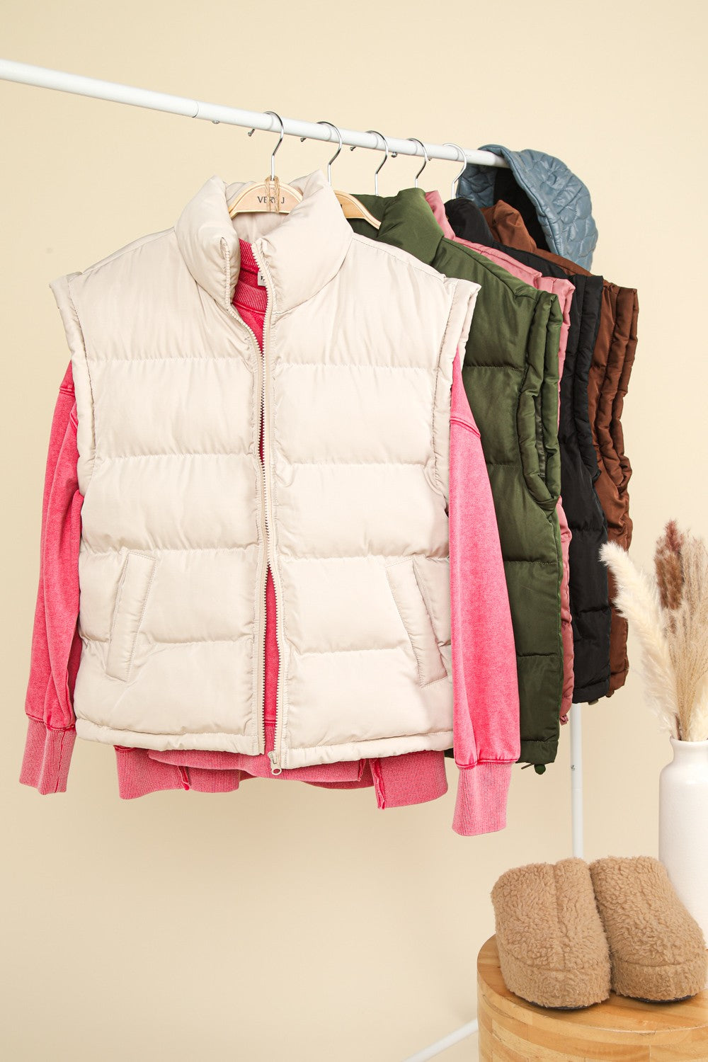 Stay warm and stylish all winter long with our Cream Puffer Winter Vest!