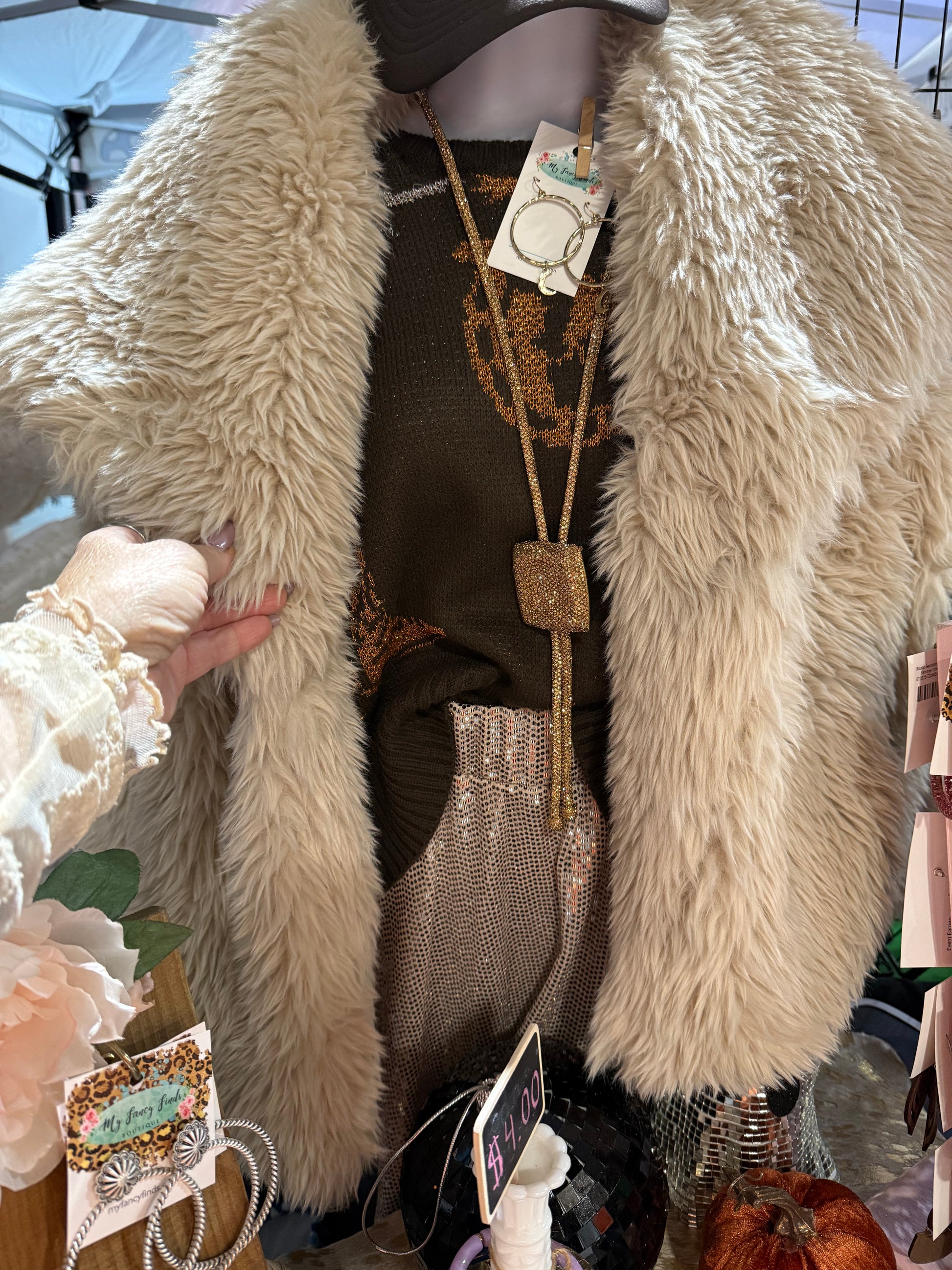 Crafted in a rich brown knit, it’s designed with a classic crew neckline, full long sleeves, and a relaxed fit that’s ideal for layering. Pair it with denim, boots, or even a maxi skirt for effortless fall styling with a boho twist.