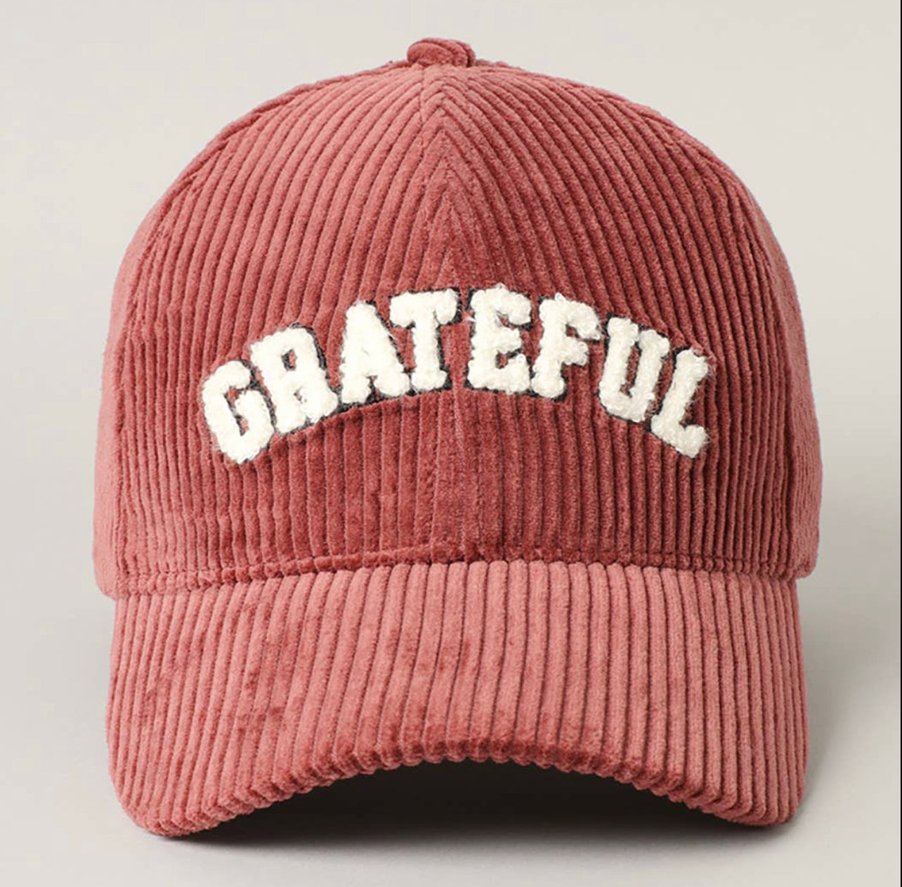 Classic baseball style cap with trending chenille letters on the brim. Great for all the ladies on the go! Very trendy and I will definitely be wearing this one for the coming season of gratitude!