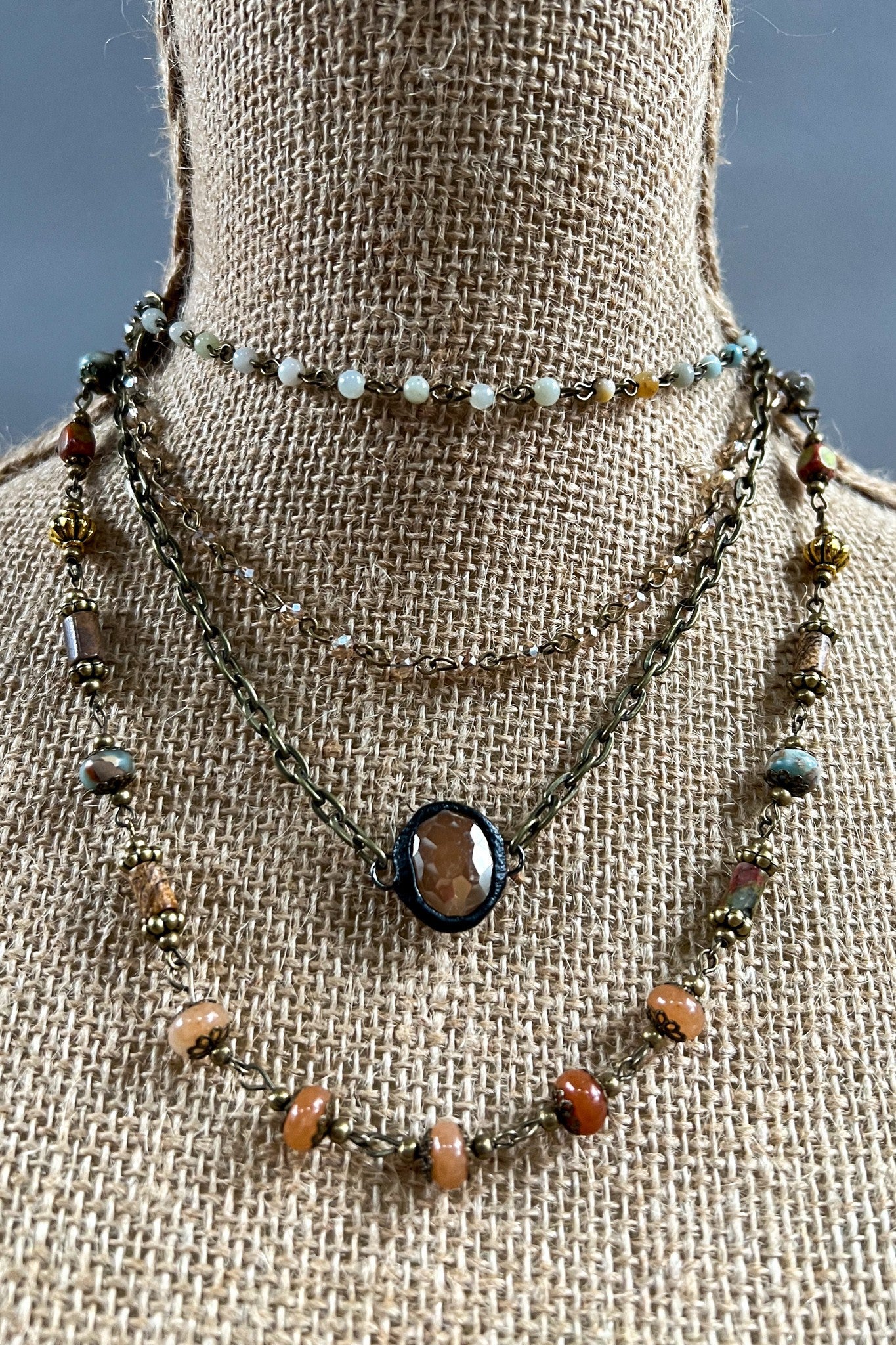 Justina Layered Mixed stone and metal necklace