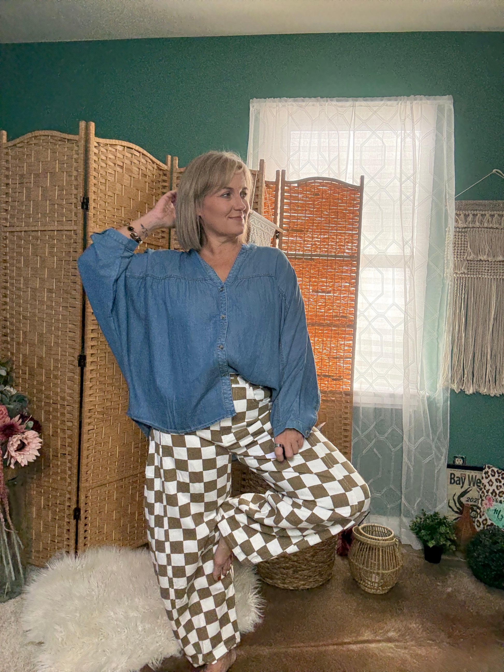 Elevate your casual denim game with our Mocha Grid Barrel Jeans — the perfect blend of statement style and everyday comfort. Featuring a trendy mocha checkered print and a flattering barrel-leg silhouette, these jeans offer a fashion-forward twist with laid-back vibes. Designed with a front zipper and button closure plus a hidden elastic back waistband, they hug in all the right places while giving you extra room where you need it.