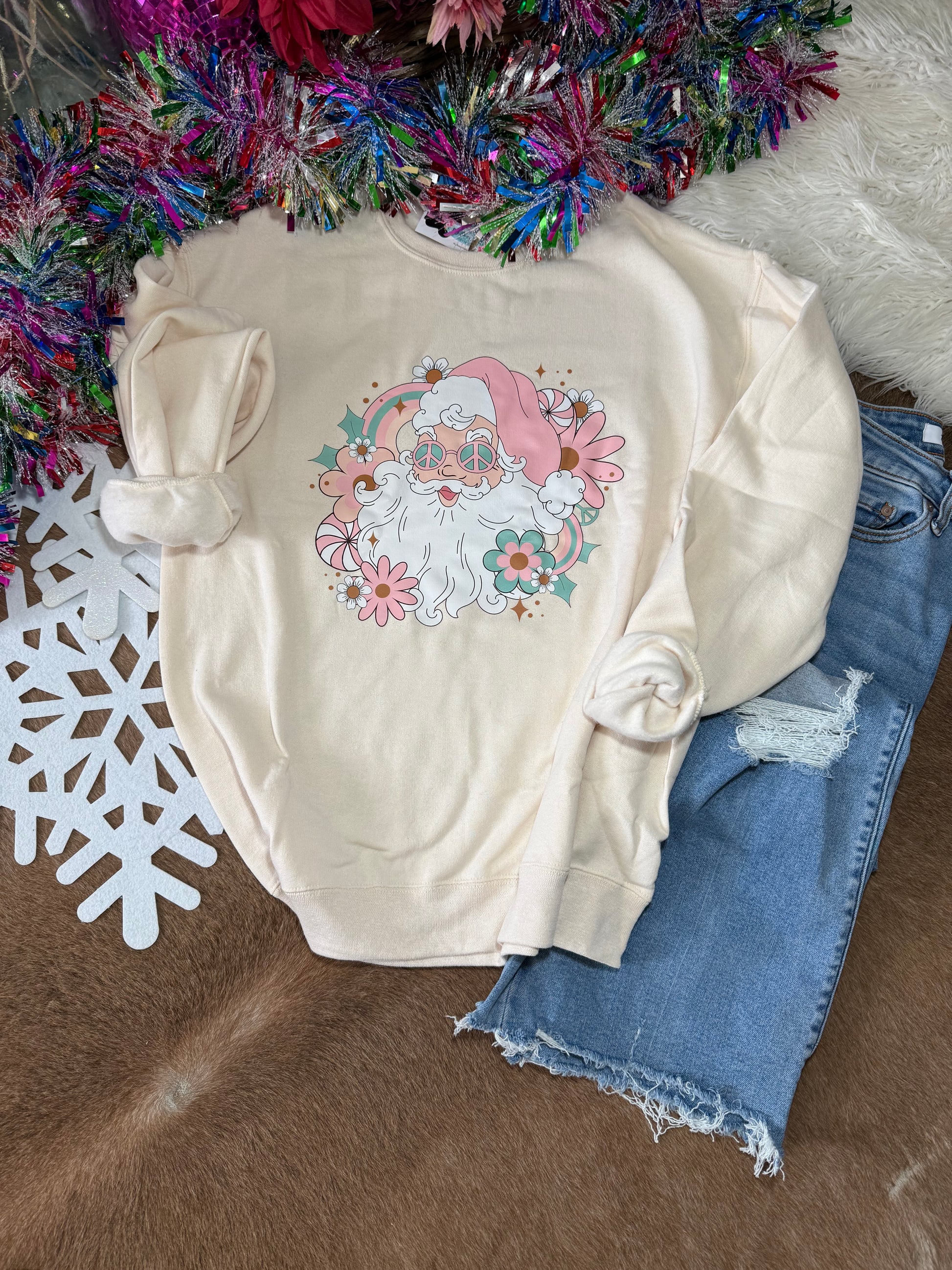 Neutral and chill long sleeve crew sweatshirt with a touch of vintage color is such a festive addition to your holiday wear!