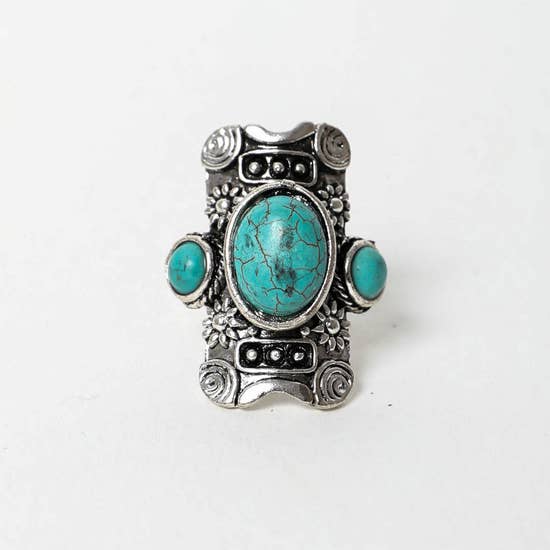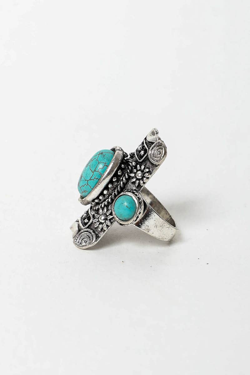 Natural Variation Spirit Turquoise Stone Ring on an adjustable band. Measures . Each stone is slightly different, stones are all handcut.