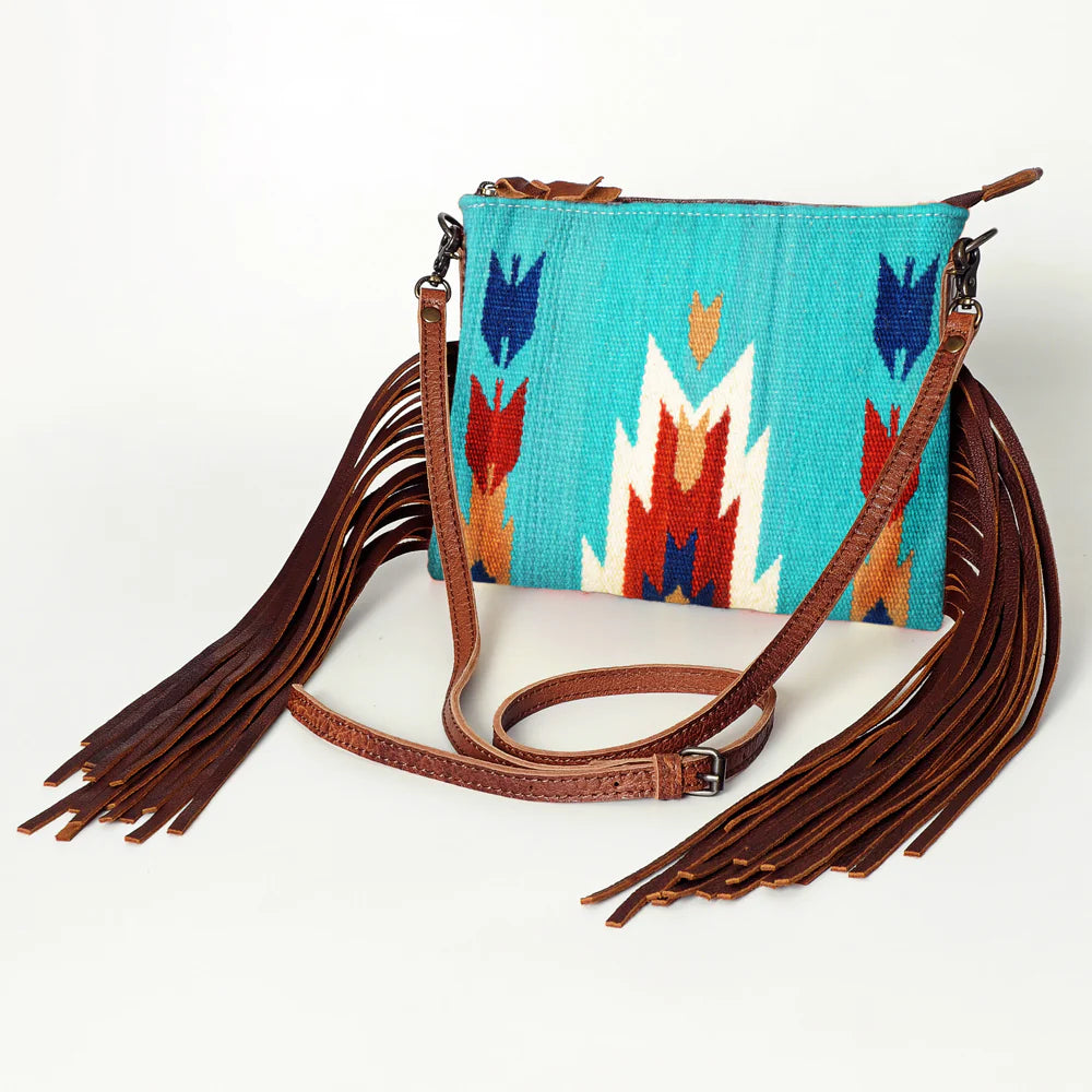 The hand weaved woolen saddle blanket gives the bag a western traditional yet trendy and elegant look.