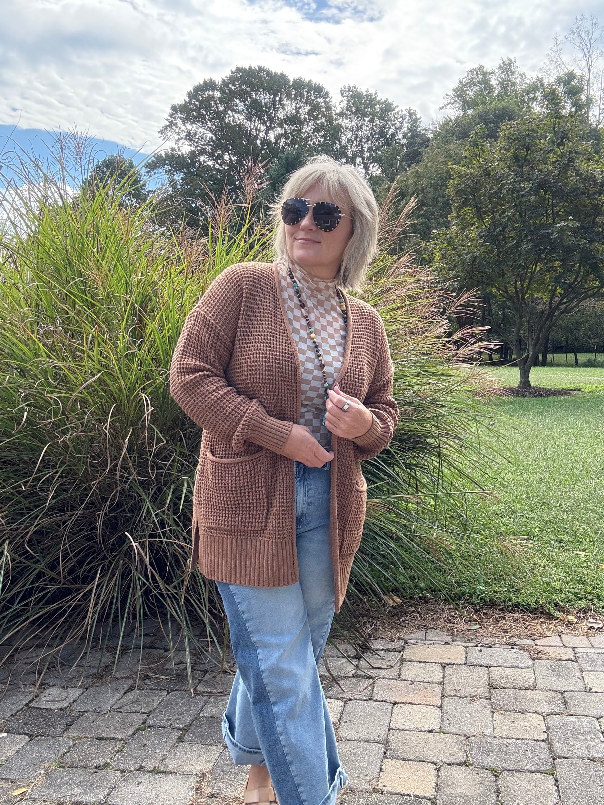 Add warmth and style to any outfit with the Waffle Soft Cardigan in Deep Camel. This rich neutral tone pairs effortlessly with denim, dresses, or leggings—while the soft low gauge waffle knit keeps you cozy without overheating.
