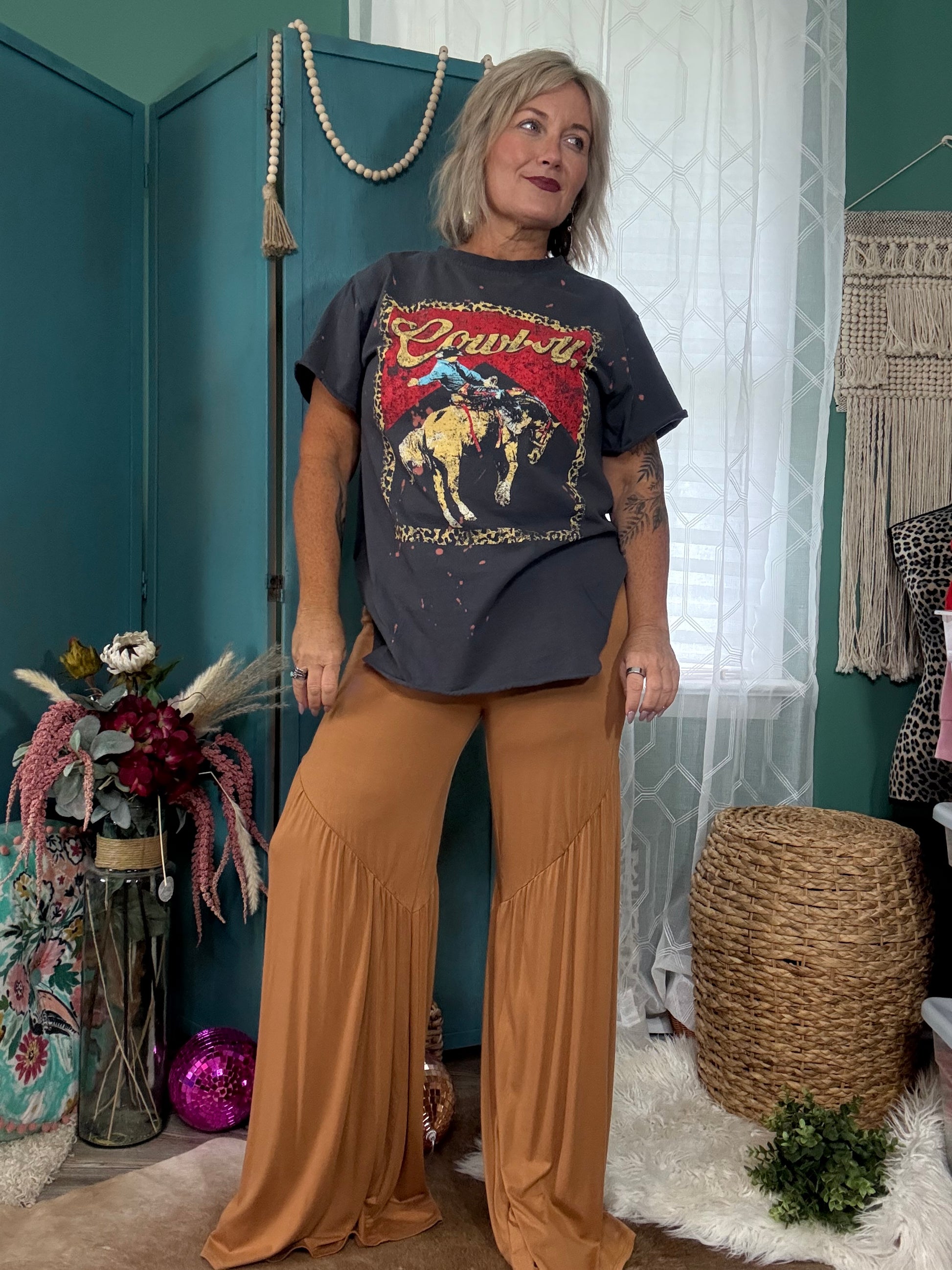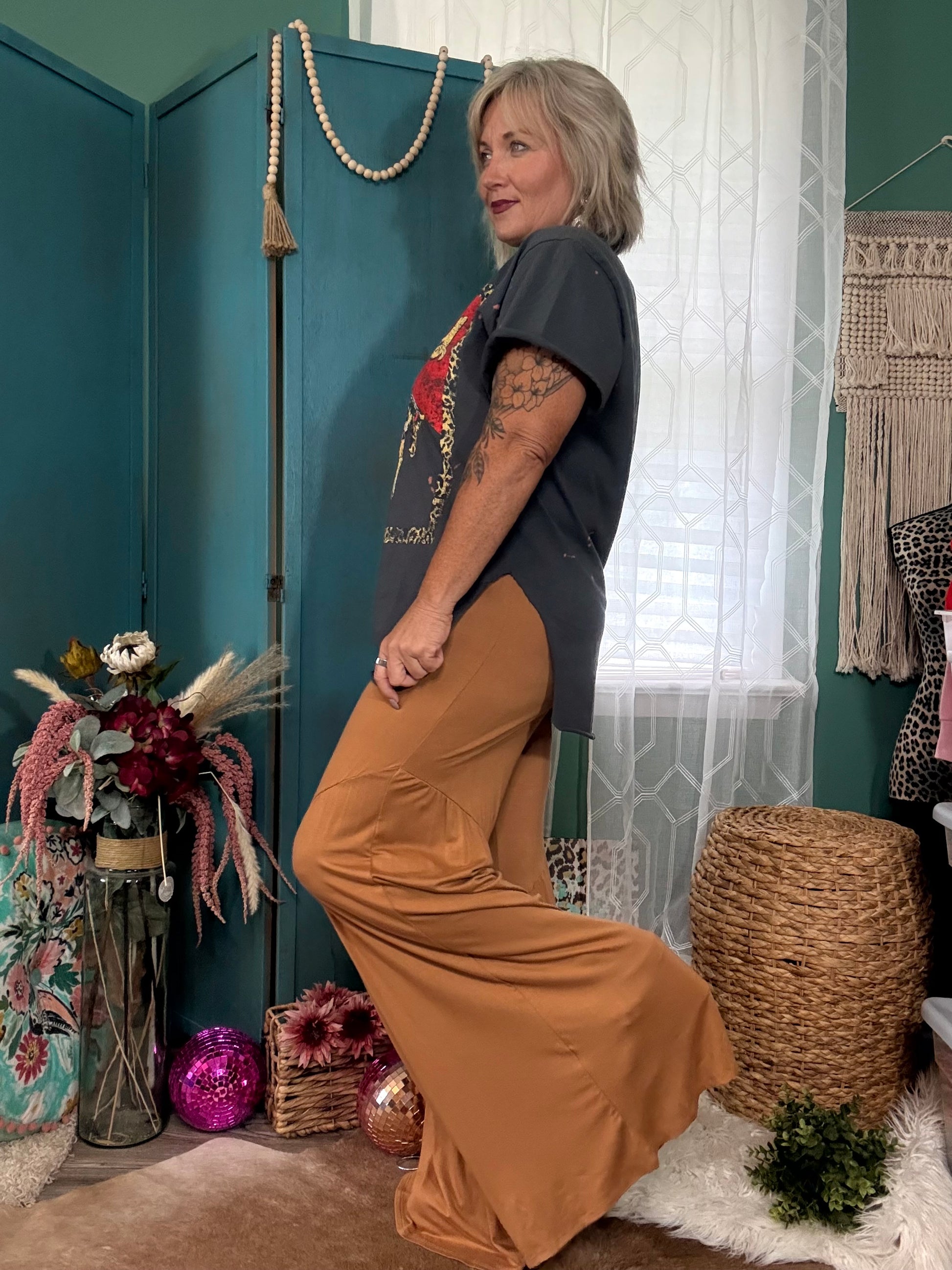 These Wild Comfort Wide Leg Stretch Pants in Meerkat Tan bring playful ease to your wardrobe.